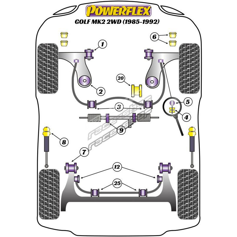 Powerflex Kormánymű rögzítő szilent készlet Volkswagen Golf MK2 2WD (1985 - 1992)