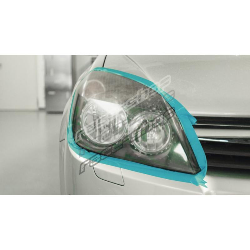 1. A polírozás előtt ragassza le a fényszórók széleit ragasztószalaggal, majd öblítse le tiszta vízzel.