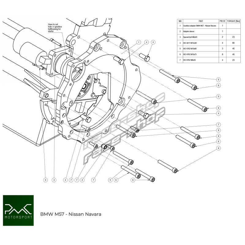 PMC Motorsport adapterlemez (sebességváltó adapter / sebességváltó adapter) BMW M57 - Nissan Navara YD25DDTi / D40Küldje el kérését vagy kérdését