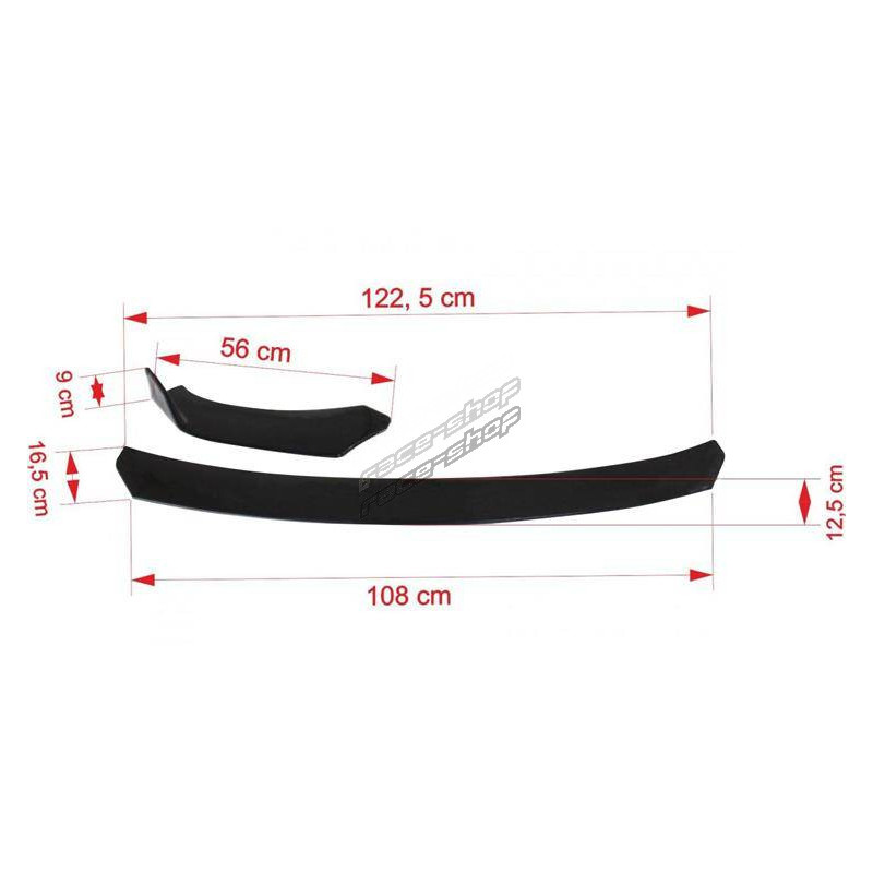 RACES Univerzális első lökhárító ajak oldalsó osztószerkezettel (lapos) - Fekete