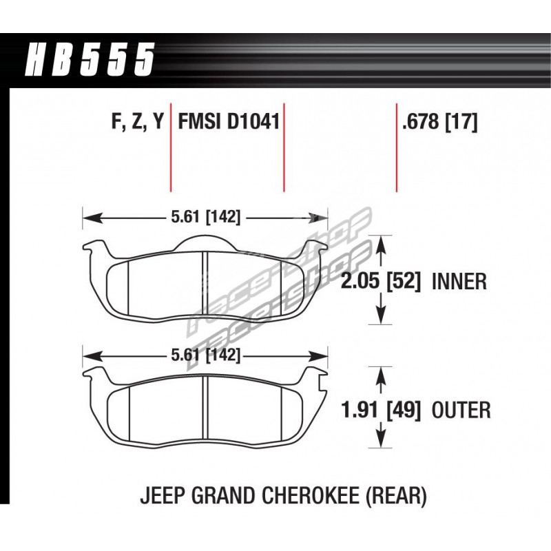 Fékbetét hátsó Hawk HB555Z.678, Street performance, min-max 37°C-350°C