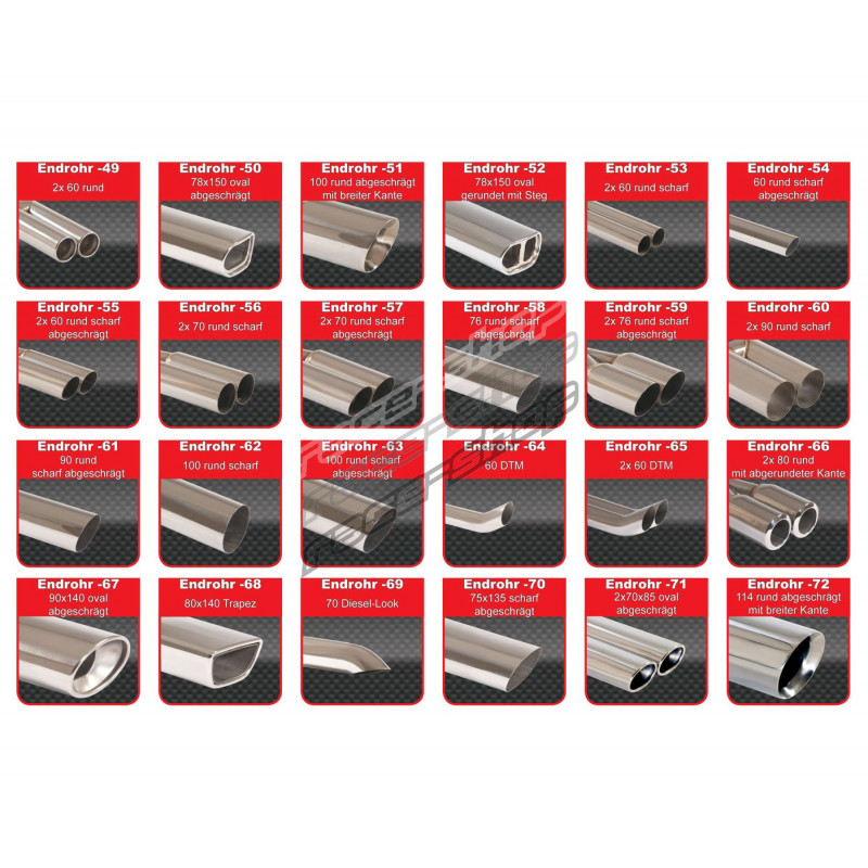 A megrendelés előtt kérjük, adja meg a kipufogóvég-kódot. (példa. Endrohr-1)