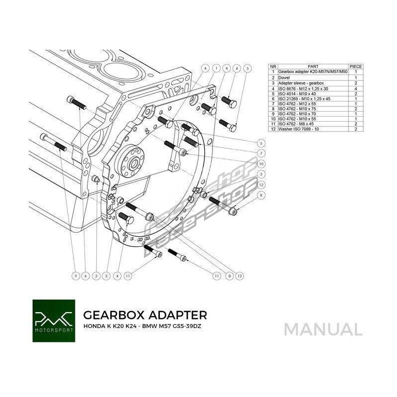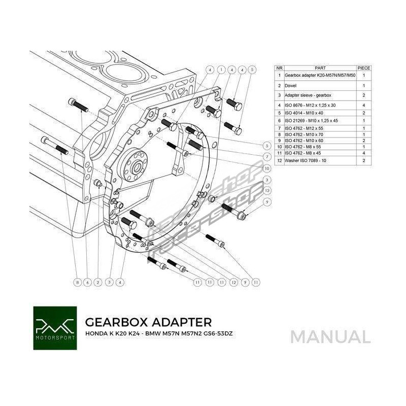 PMC Motorsport Alumínium adapter (karima / karima) Honda K K20 K24 - BMW ZF310 / ZF320 / ZF GS5-39DZ / Getrag420G / ZF GS6-37DZ / ZF GS6-53DZ HGK HGU JGA HGD HGA JGL / GS6-53BZ / Getrag DCT DKG GS7D36SG inline-six / ZF 8HP 8HP70 8HP50Küldje el kérését vagy kérdését