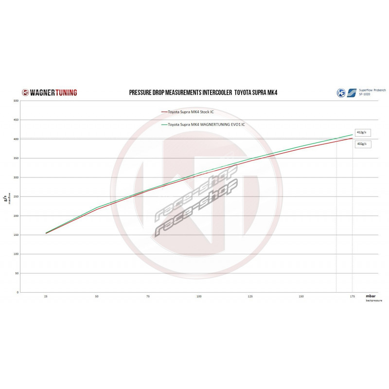 A WAGNERTUNING nagyteljesítményű intercooler új versenymaggal (Tube Fin) rendelkezik a következő méretekkel: 700 mm x 300 mm x 90 mm / 27,5 Inch x 11,8 Inch x 3,54 Inch. Ez a nagyteljesítményű mag 262 %-kal nagyobb homlokfelületet és 150 %-kal nagyobb magtérfogatot kínál a széria intercoolerhez képest.