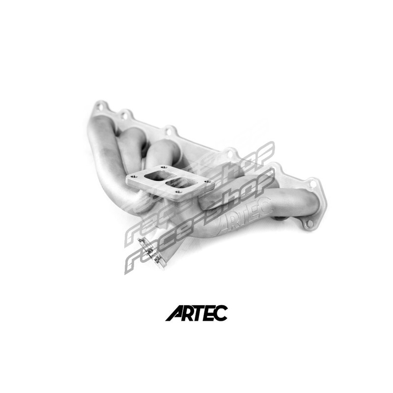 Manufactured by Artec in Australia, this cast stainless steel T4 exhaust manifold is designed to suit Toyota 1JZ non VVT-i engines. It fits in Supra, Soarer, Mark II, Chaser, Cresta... It is compatible with a wide range of turbochargers, from G30 to G45, as well as Precision 5858 to 7175 and larger.