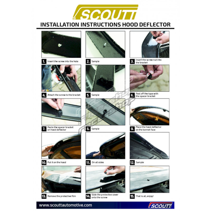A légterelő tartós öntött plexiüvegből készült. A motorháztetőhöz speciális fémkonzolokkal van rögzítve, amelyeket úgy terveztek, hogy fúrás nélkül, egyszerűen felszerelhető legyen. A légterelőt tartós szilikon terelőlapok választják el a motorháztetőtől, így biztosítva a csendes, kényelmes és funkcionális működést.