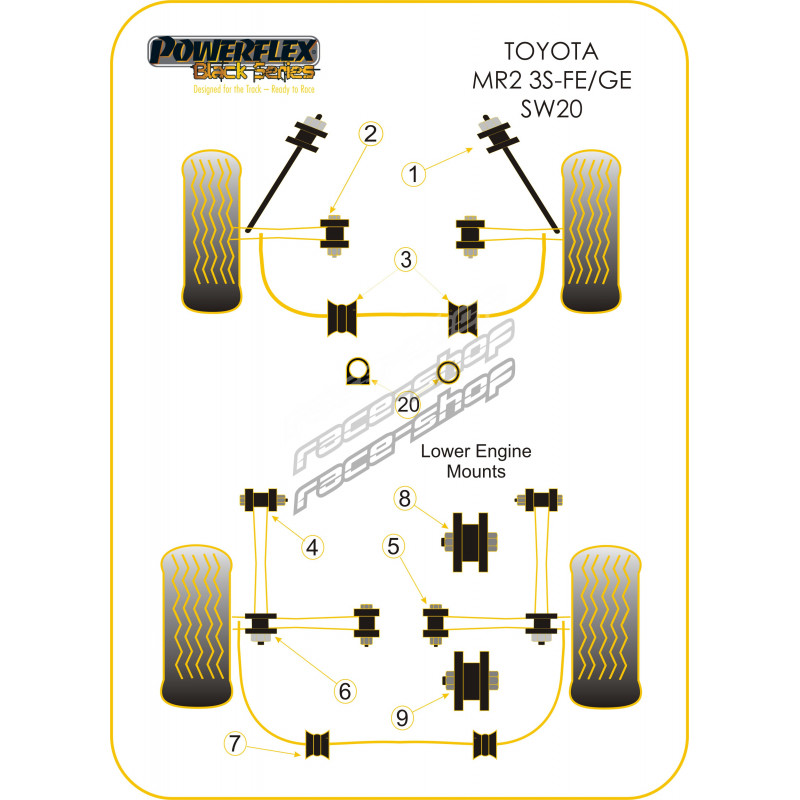 Powerflex Első Motortartó bak 73mm Toyota MR2 SW20 REV 1 (1989-1991)