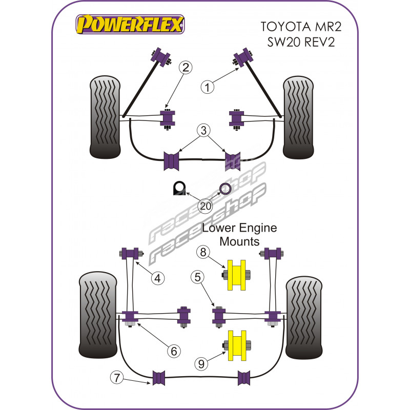 Powerflex Hátsó lengőkar belső szilent - Csavar M14 Toyota MR2 SW20 REV 2-5 (1991 - 1999)