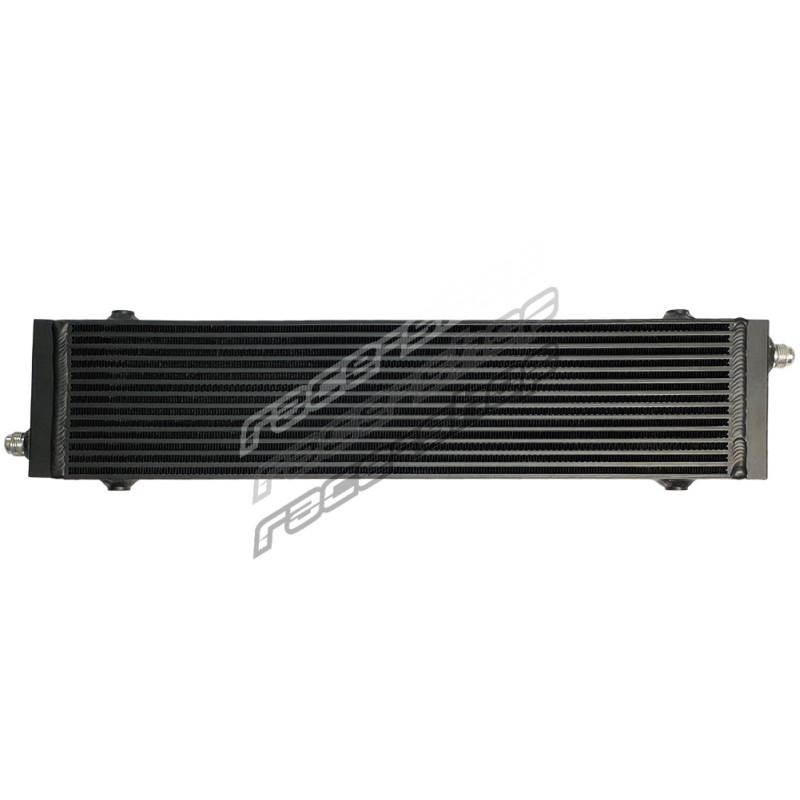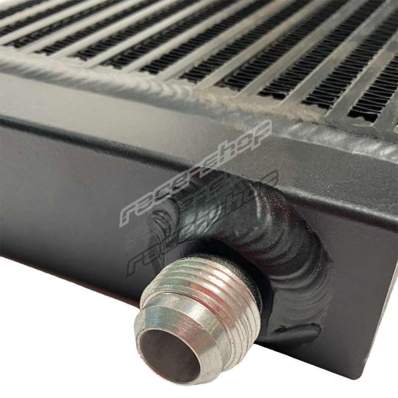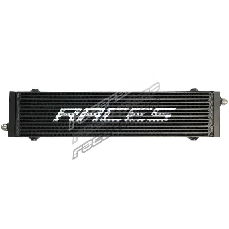 Heavy Duty RACES MOTORSPORT olajhűtő a motor, a sebességváltó, a kormánymű vagy a differenciálmű olajának hűtésére. Ideális motorsport kiegészítő a hőmérséklet csökkentésére. A nagy oldalsó tartályok a hagyományos olajhűtőkhöz képest nagyobb olajkapacitást biztosítanak. A ferde kivezetések arra kényszerítik a folyadékot, hogy a hűtő teljes felületét kihasználja, ami segít a hűtőn keresztül áramló folyadék hőmérsékletének gyorsabb csökkentésében. A maximális hatékonyság érdekében javasoljuk egy ventilátor opcionális beszerelését..