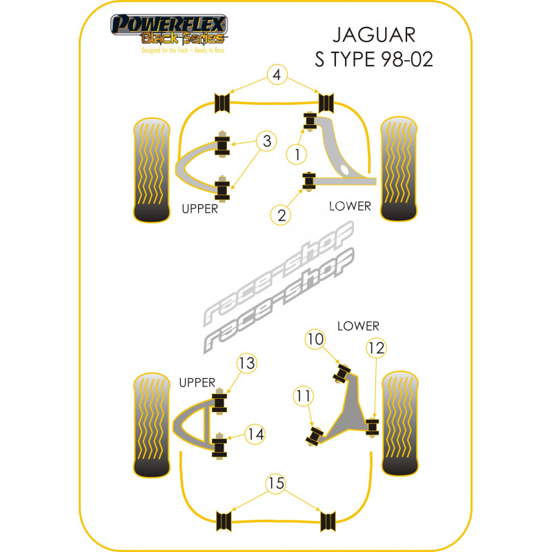 Powerflex Hátsó Hátsó-felső lengőkar belső szilent Jaguar (Daimler) S Type - X200 (1998-2002)