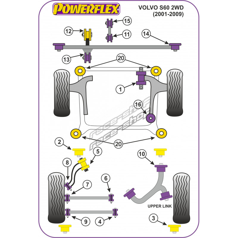 Powerflex Első - hátsó bölcső szilent Volvo S60 , V70-Mk2, S80-Mk1