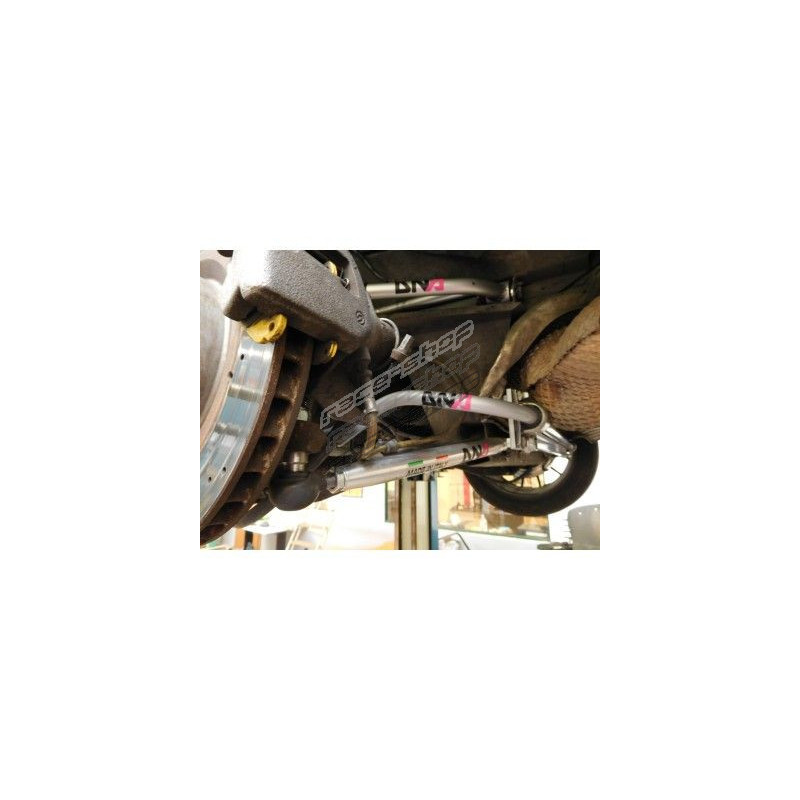 A DNA Racing készlet 25 mm-es Ergal 7075 T6-os ötvözött rudakból, motorsport uniballból álló gömbcsuklókból, kapcsolódó szennyeződés elleni védelemmel, amely normál közúti használat során is biztosítja a tartósságot, Ergal Alumínium eloxált távtartókból és nagyon ellenálló, króm-molibdénből készült kúpos tengelyekből, valamint egy hátsó merevítő hátsó futómű rúdból áll.