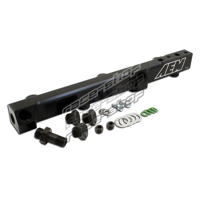 Az Egyesült Államokban készült AEM befecskendező sínek teljes egészében kovácsolt alumíniumból készülnek, és a mellékelt szerelési tartozékoknak köszönhetően a meglévők helyére szerelhetők. A 9/16 "x18-as menetes be- és kivezetőnyílásuknak köszönhetően egyedi Dash 6 üzemanyagkörrel is használhatók.