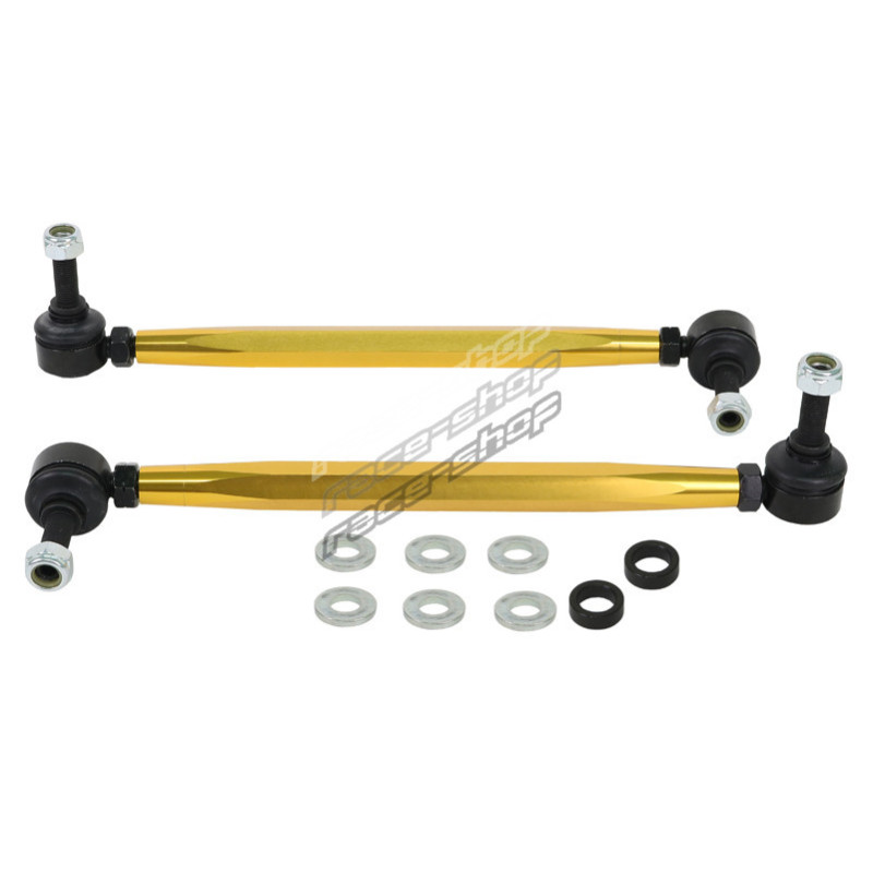 Not many enthusiasts are aware that OEM and more importantly aftermarket sway bar effectiveness can be hindered by worn or inadequate mounts, drop links and lateral stoppers. Whiteline adjustable sway bar links are engineered to be up to the task with top spec, light weight componentry combined with a window of adjustability, eliminating sway bar preload on installation but most importantly ensuring the maximum output of the sway bar for improved grip and better handling.